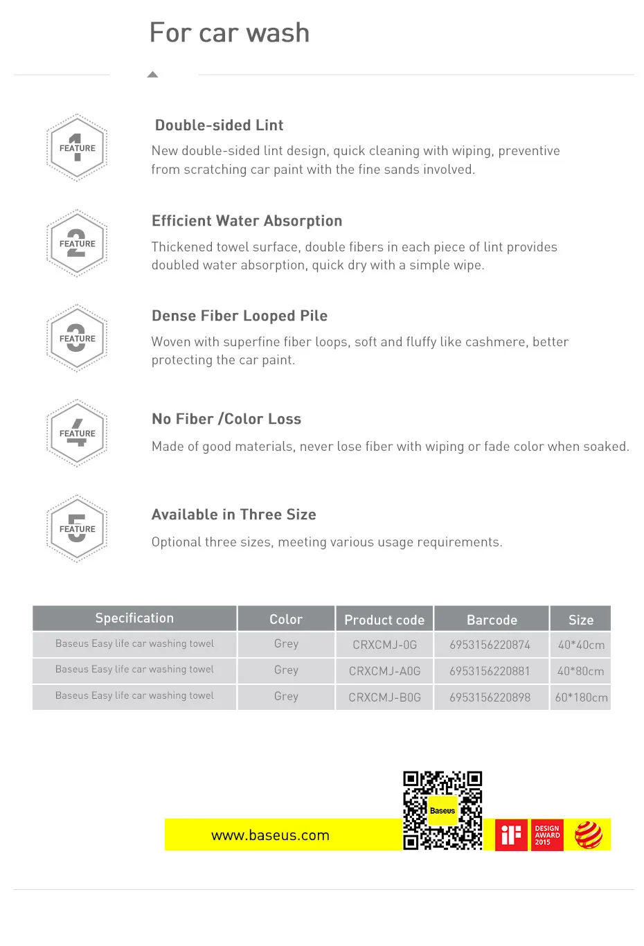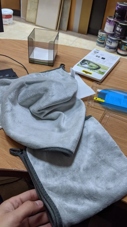 Автомобильные полотенца хорошего качества. Размеры соответствуют описанию продавца. Приятный и практичный светло-серый цвет. Микрофибра хорошо работает-занимает много времени. Дополнительная стильная упаковка. Нормальная скорость доставки. Baseus хорошо работает.