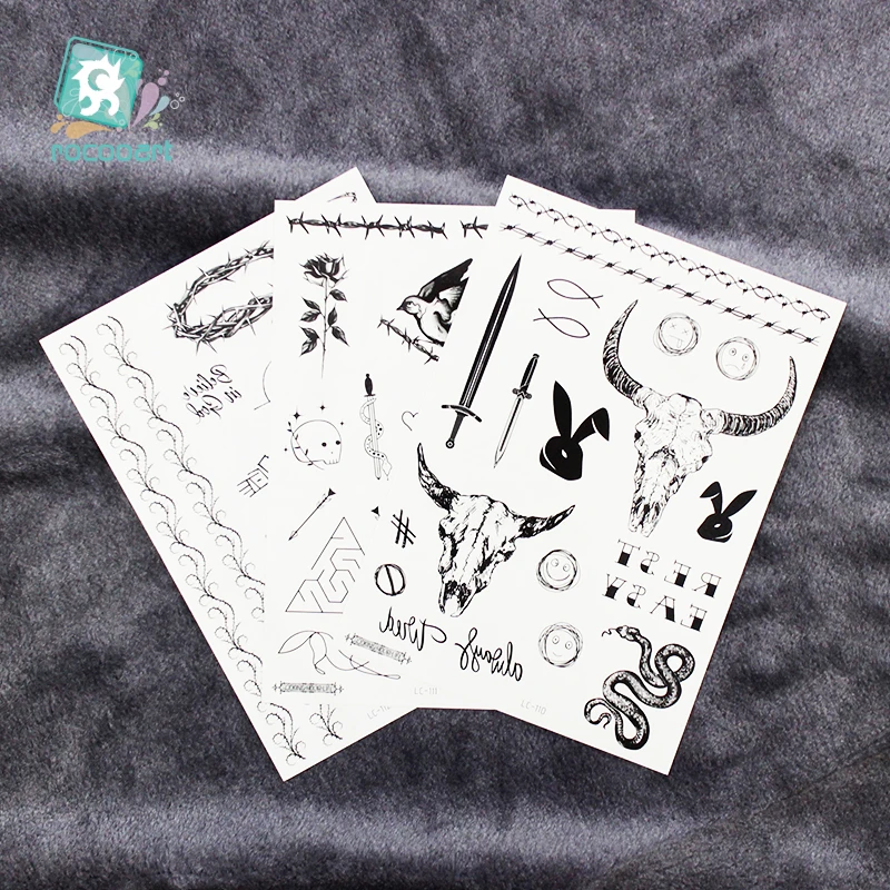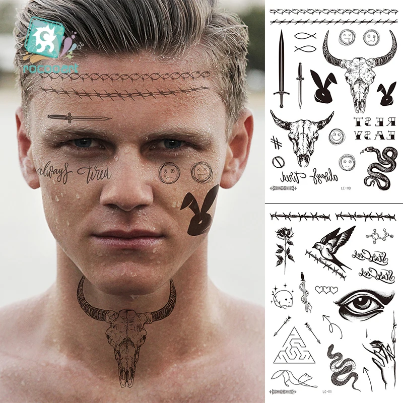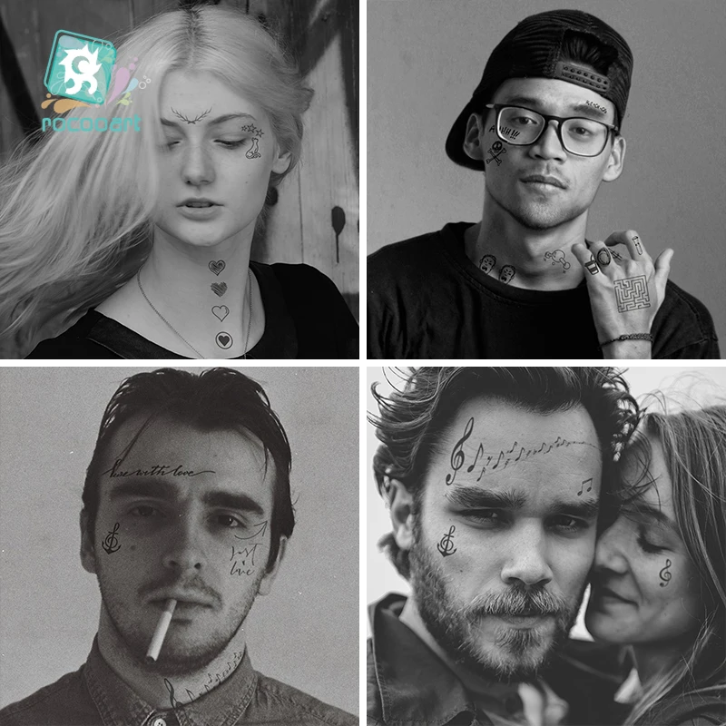 Тату на лицо Rocooart Post Malone, наклейка для Временной Татуировки черного цвета, на шею для мужчин и женщин, инструмент для макияжа