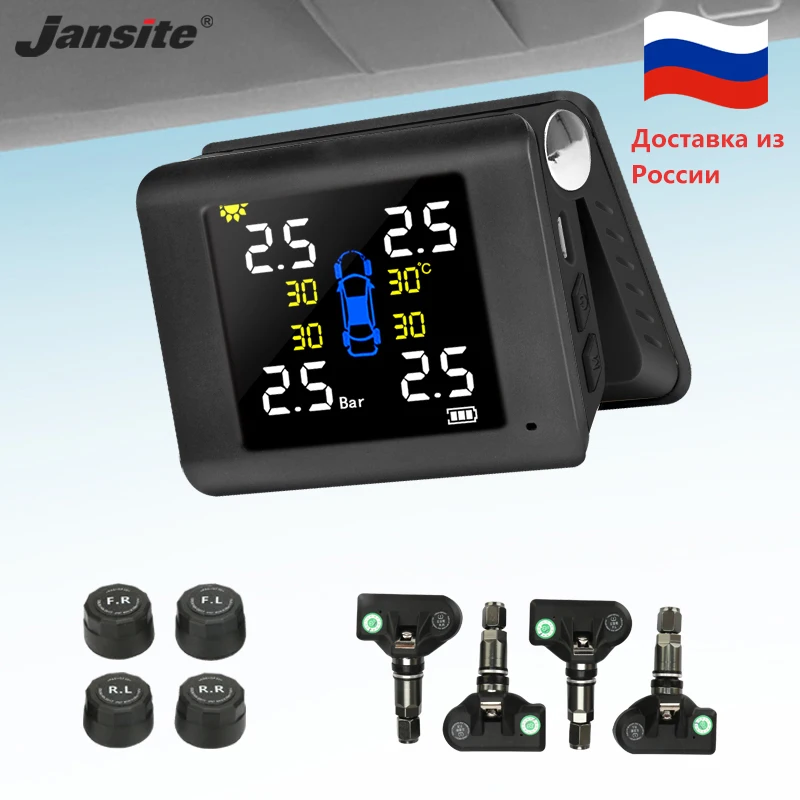 Jansite TPMS автомобильная система мониторинга давления в шинах Черная Автоматическая Беспроводная Солнечная зарядка tpms 4 встроенный или внешний датчик Доставка из России