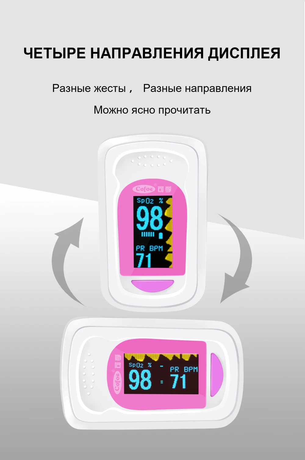 Cofoe Пульсоксиметр портативный палец SPO2 измеритель насыщения крови кислородом измерение пульса и насыщения крови кислородом с сигнализацией