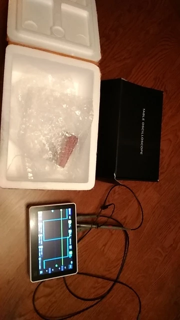 Товар готовился к отправке больше недели, но прибыл через дней. Упаковка отличная - в двух пенопластовых коробках. Сам прибор тестировал не основательно ( по сравнению с старыми аналоговыми осциллограми ) не хватает чувствительномсти на маленьких напряжениях и нет способа задать на каналах разные времененые разверки.