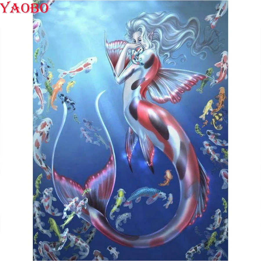 Алмазная 5D картина сделай сам, картина с полными квадратными и круглыми стразами, с изображением морской пейзажа русалки, наборы для вышивки крестиком, мозаика, домашний декор, искусство