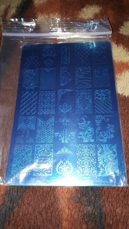 Пластина красивая, большая. Рисунки очень интересные, большие, подойдут даже на крупные и длинные ногти, можно использовать только части рисунка... Мне, к сожалению, пришла пластина погнутая, видимо, почта наша постаралась, упакована была в пакет с пупыркой, и она ее не спасла, разогнуть не получилось, из-за этого, часть рисунков не получится использовать, продавец вернул часть стоимости.5*