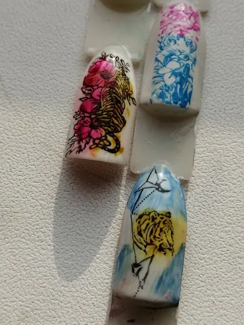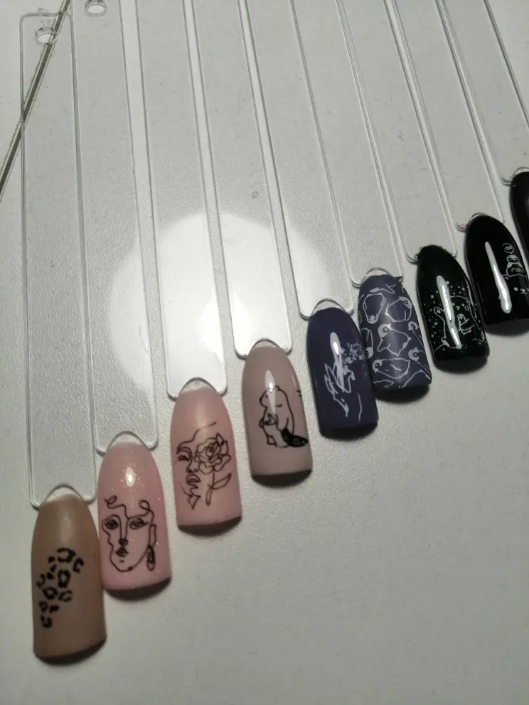 пластины работают не со всеми лаками для стемпинга, нужно подбирать и лак и штампик(. Рисунки очень большие даже для длинных ногтей. Шли долго