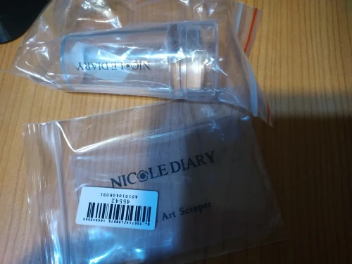 штамп хоть и не большой, но работает хорошо. скрапер мягкий, очень гнется - выкинула.