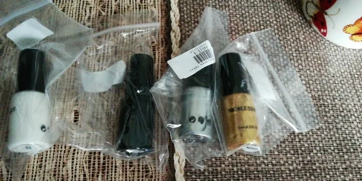 лаки хорошие, баночки полные, до них у меня стемпинг не получался единственный минус это то что курьер с*** бросил их во двор(живу в поселке) не почтовый ящик, ничего, не дозвонился и бросил во двор! за это минус звезда! отправку брала из России, пришли за полторы недели