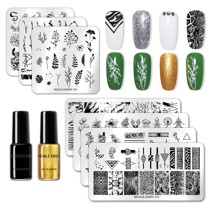 Набор трафаретов для штампов с изображением цветов в полоску, черного, белого, золотого, серебряного цветов
