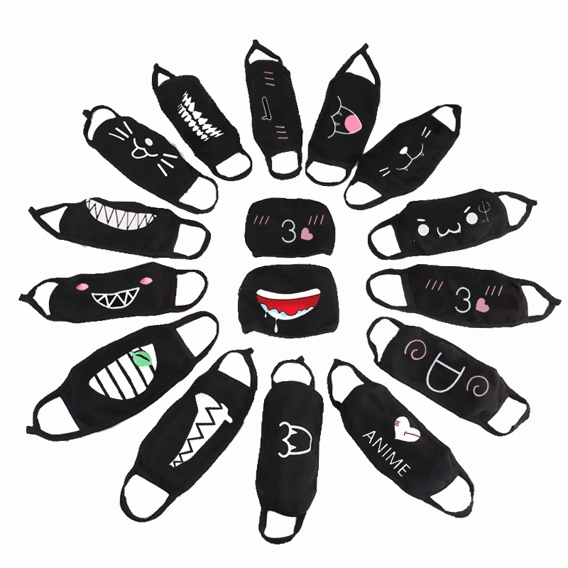 42 Стильная черная мультяшная маска из хлопка с защитой от пыли в стиле аниме, маски со ртом для лица для женщин и мужчин, вечерние наряды, подарки на день рождения
