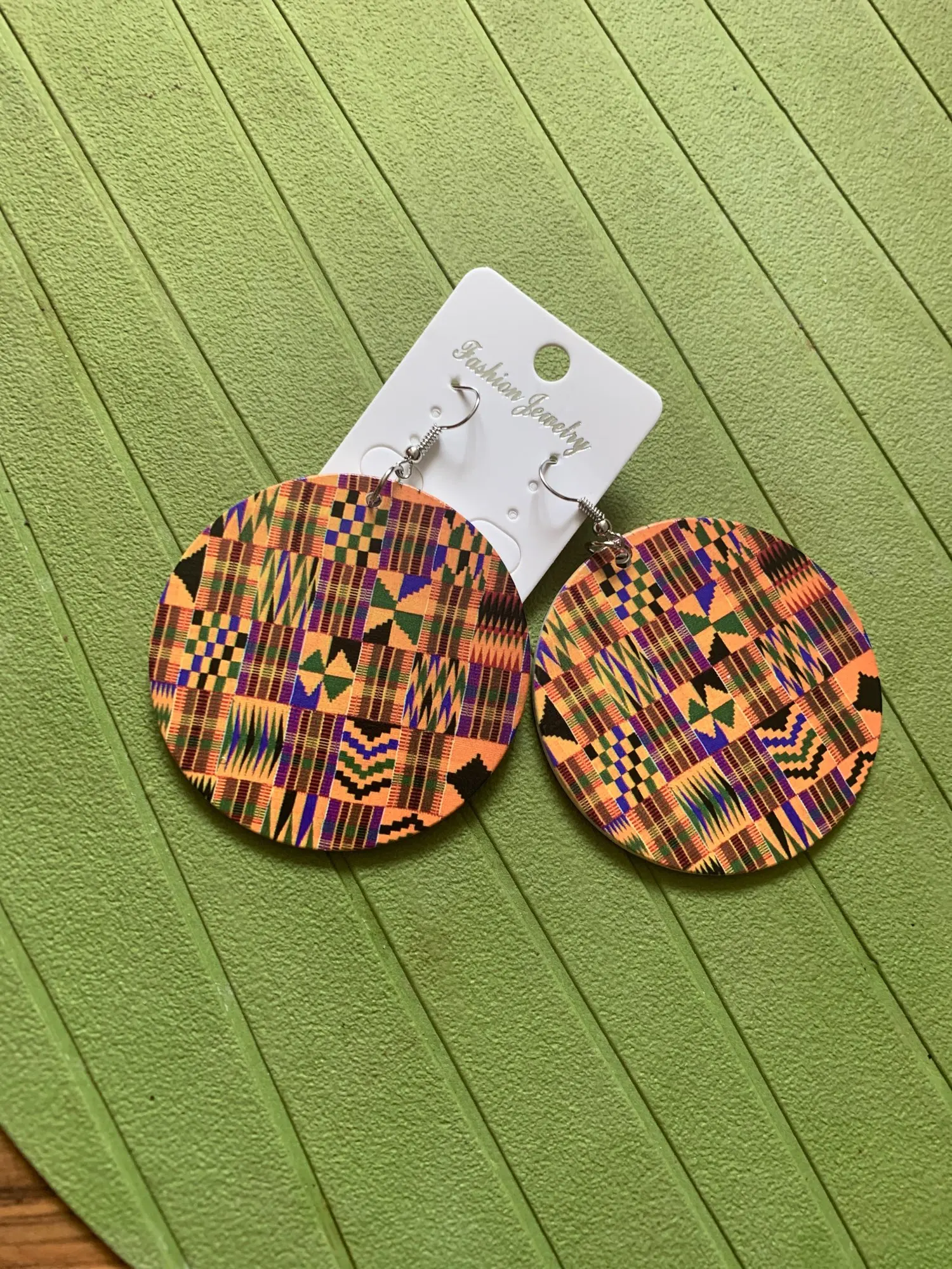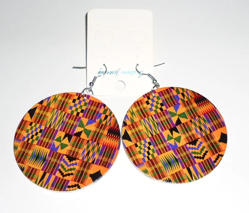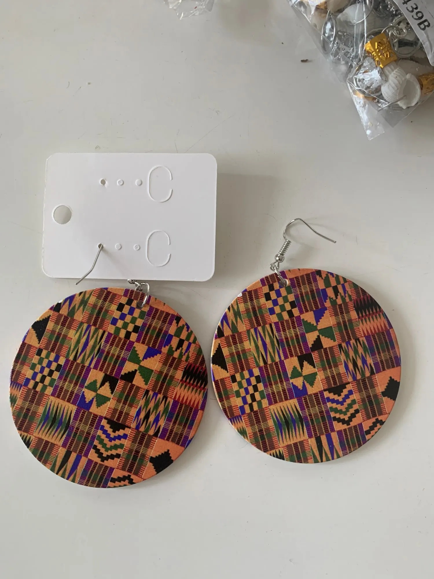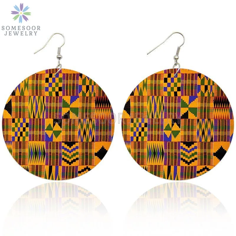 Богемные деревянные серьги-подвески SOMESOOR из Африканской ткани, афроцентрические Этнические женские головные уборы, дизайн с обеих сторон, принт для женщин