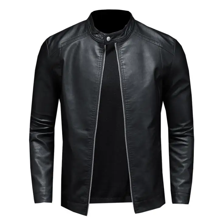 Новинка 2021, мужская куртка из искусственной кожи, мотоциклетная приталенная ветровка, Мужская модная верхняя одежда