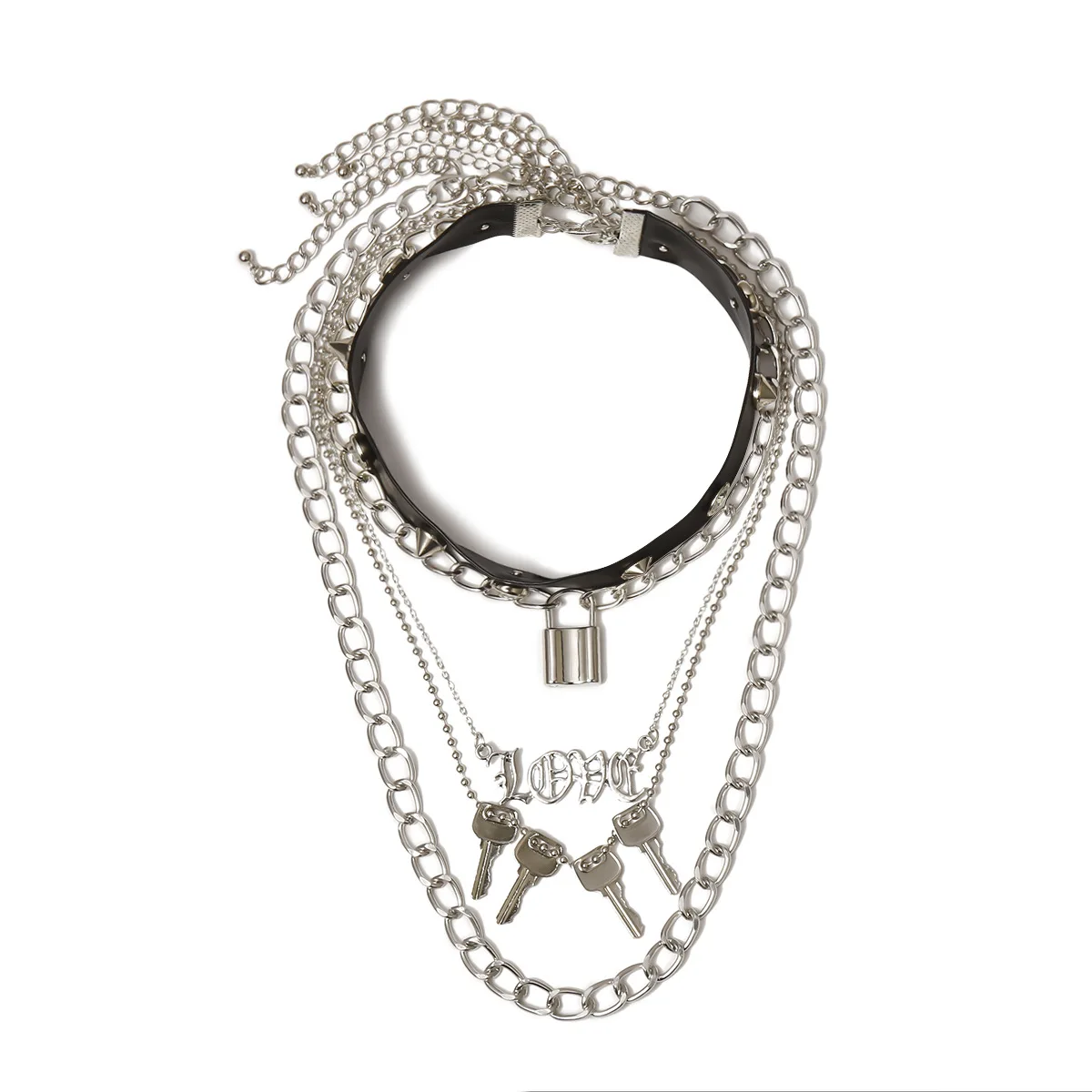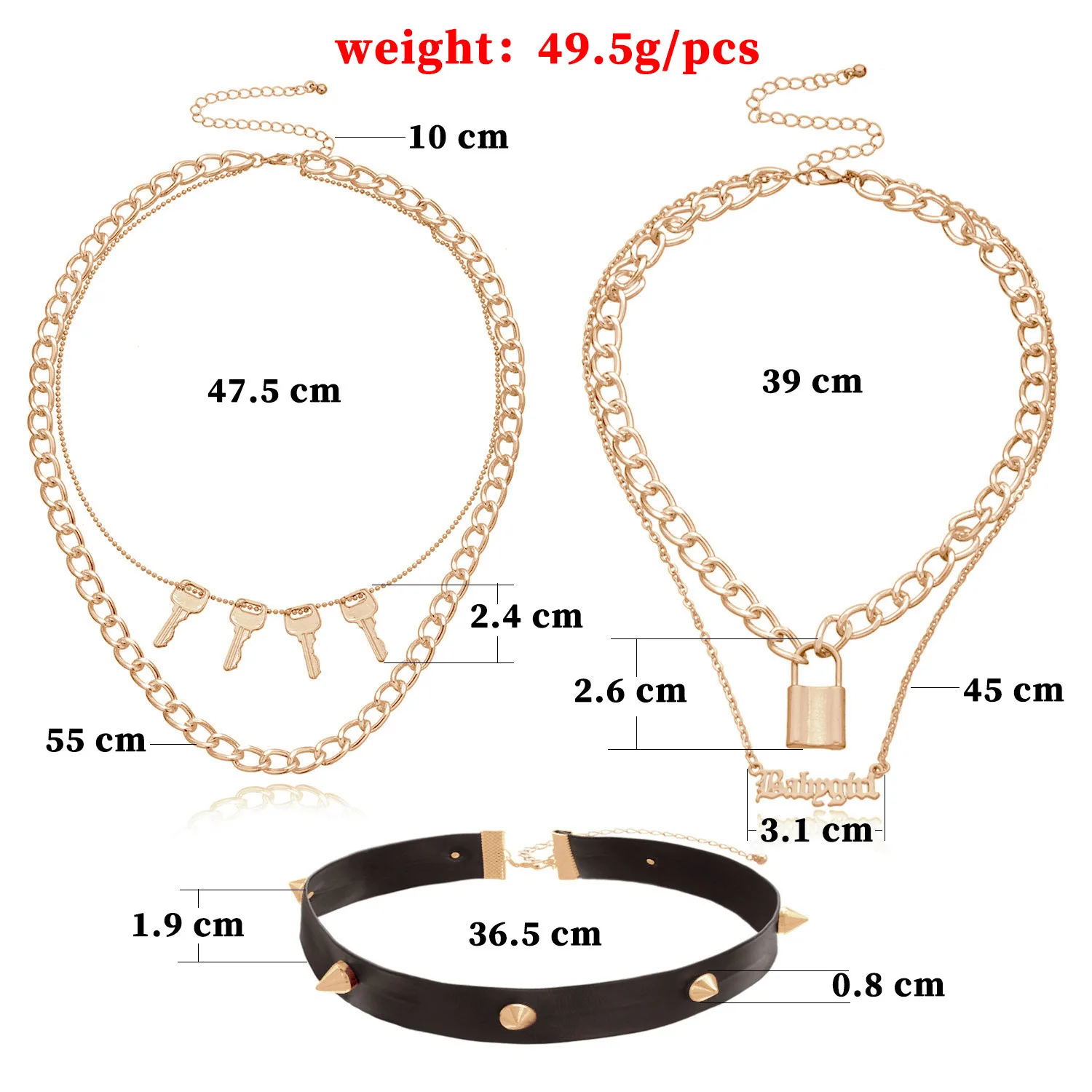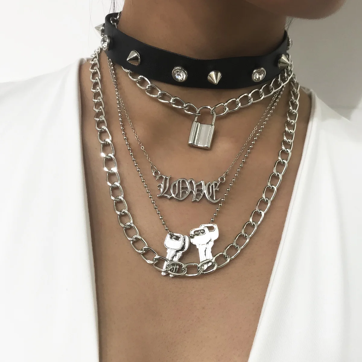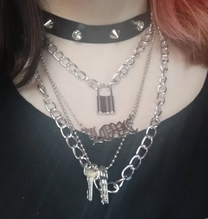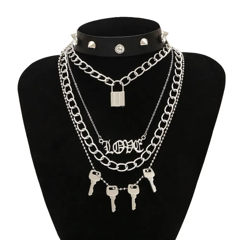 Многослойный замок в стиле панк, кулон в виде ключа любви для женщин и девочек, готическое ожерелье с шипами и заклепками, кожаное колье, ювелирные изделия в стиле хип-хоп