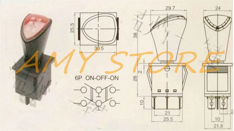 Передний-стоп-назад DPDT 6Pin защелкивающийся скользящий кулисный переключатель AC 250V 16A AC 125V 20A черный KCD4-604-6P 31x25 мм пульт дистанционного управления