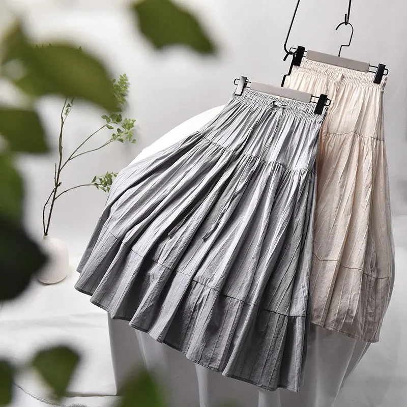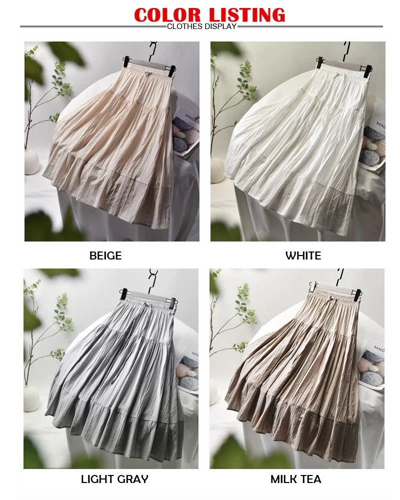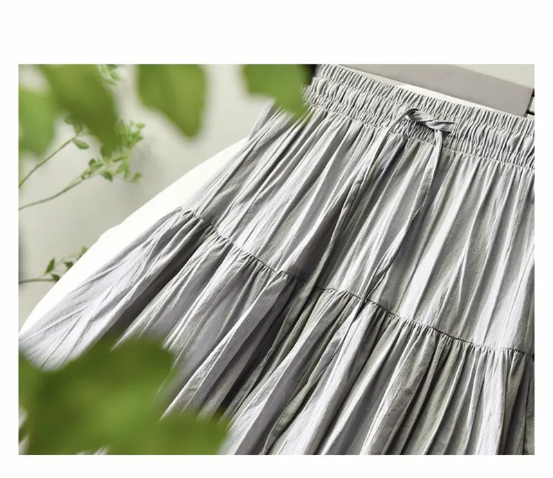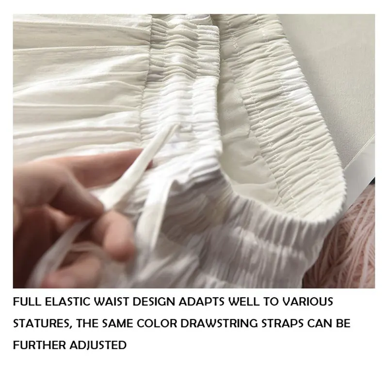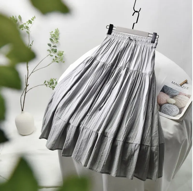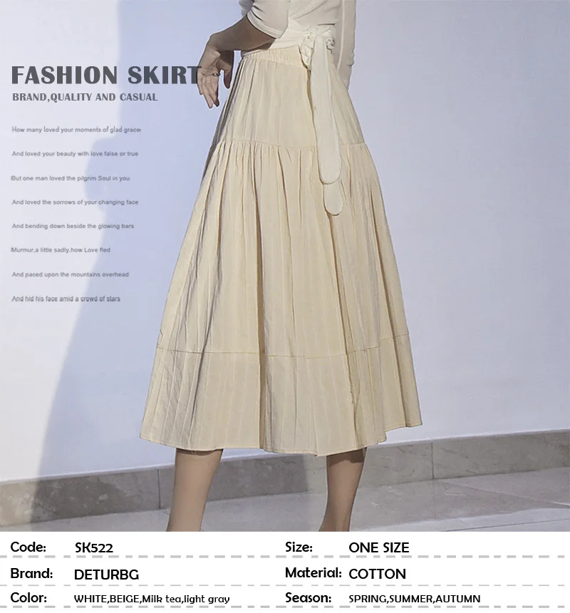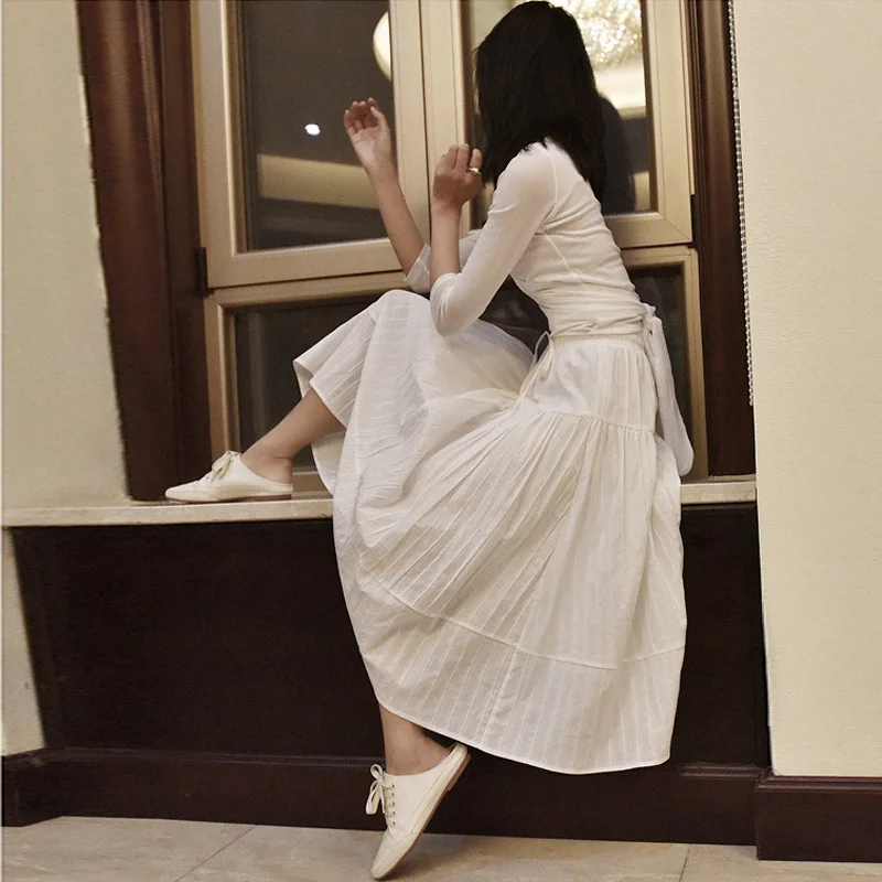 Женская хлопковая юбка в Вертикальную Полоску, элегантная белая трапециевидная плиссированная юбка средней длины с высокой талией на шнуровке в Корейском стиле, лето 2021, SK522