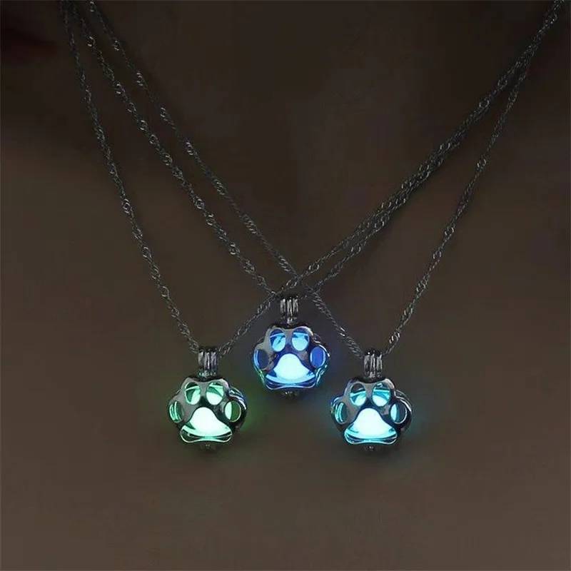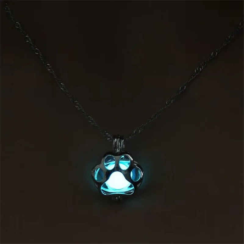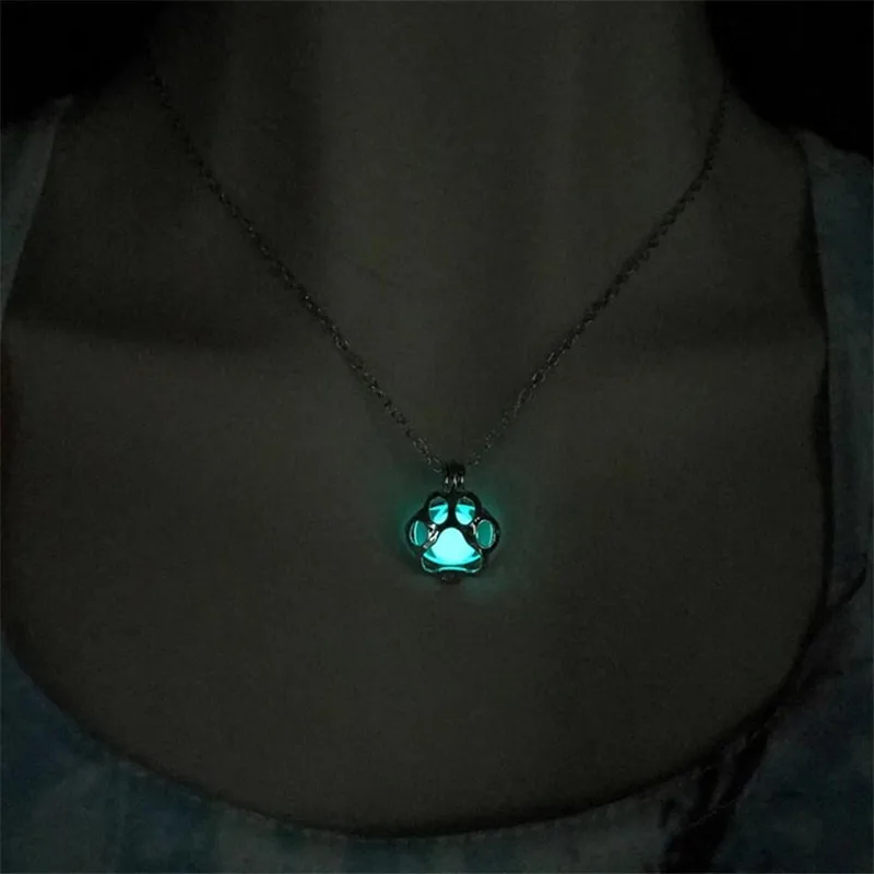 Милое светящееся ожерелье с подвеской в виде собачьей лапы, светящееся в темноте, ожерелье для мужчин в стиле панк, ожерелье с собачьей лапой, серебряная цепочка, модные украшения