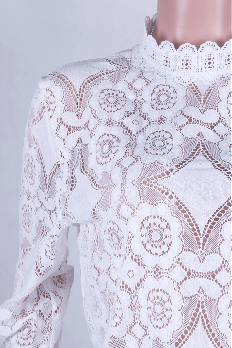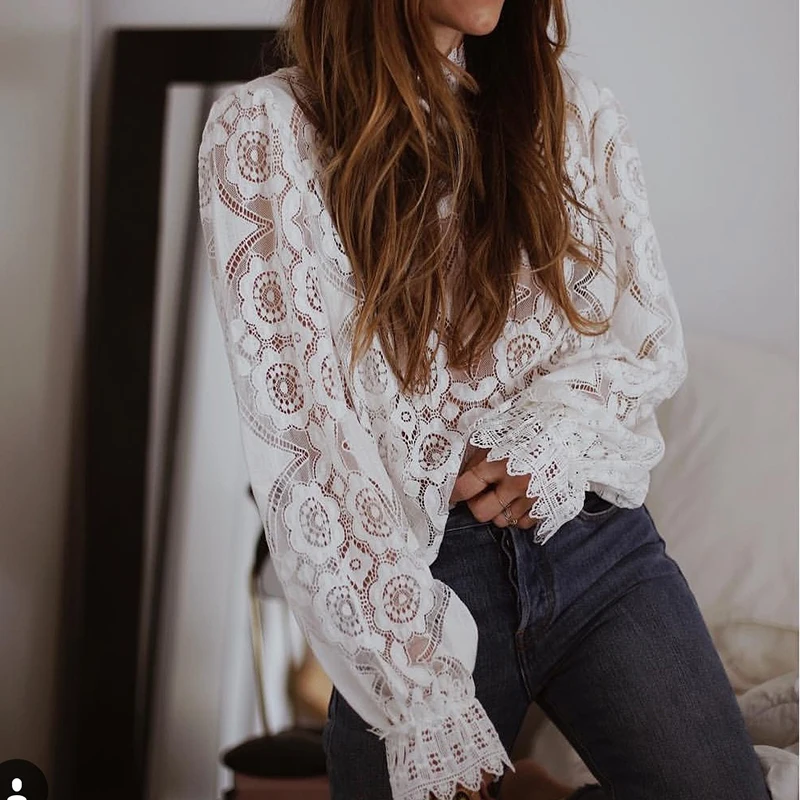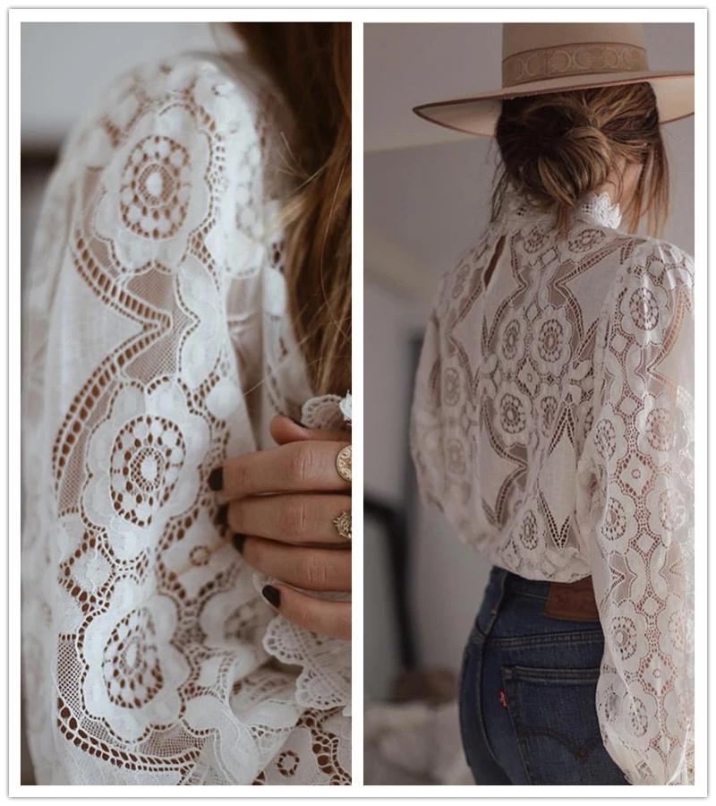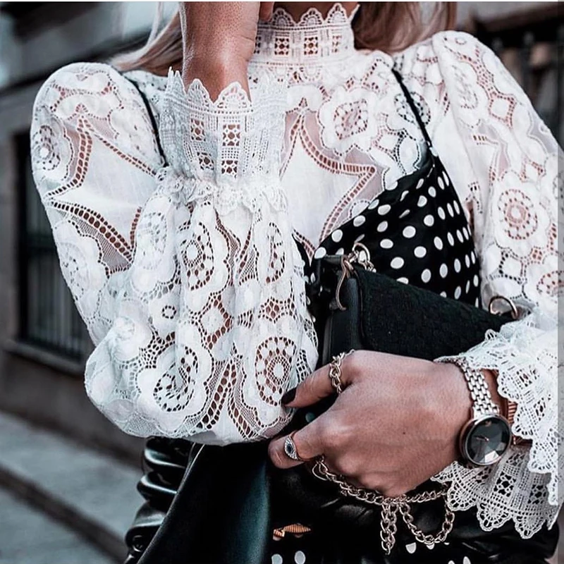 Блузка кружевная женская, с длинным рукавом, весна 2020