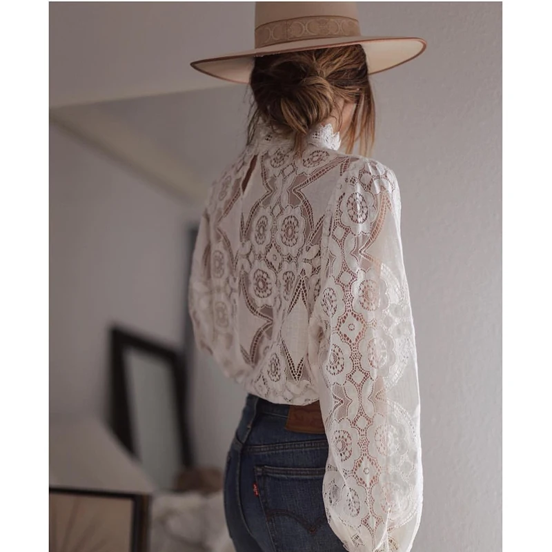 GOPlUS Женская Осенняя рубашка белая кружевная крючком Прозрачная ж...