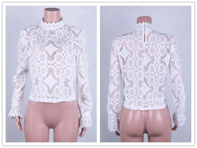 Модные женские сексуальные кружевные ажурные блузки, приталенная ру...