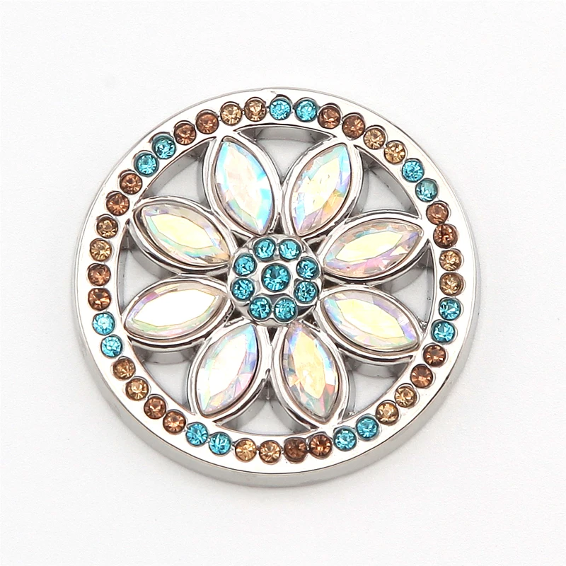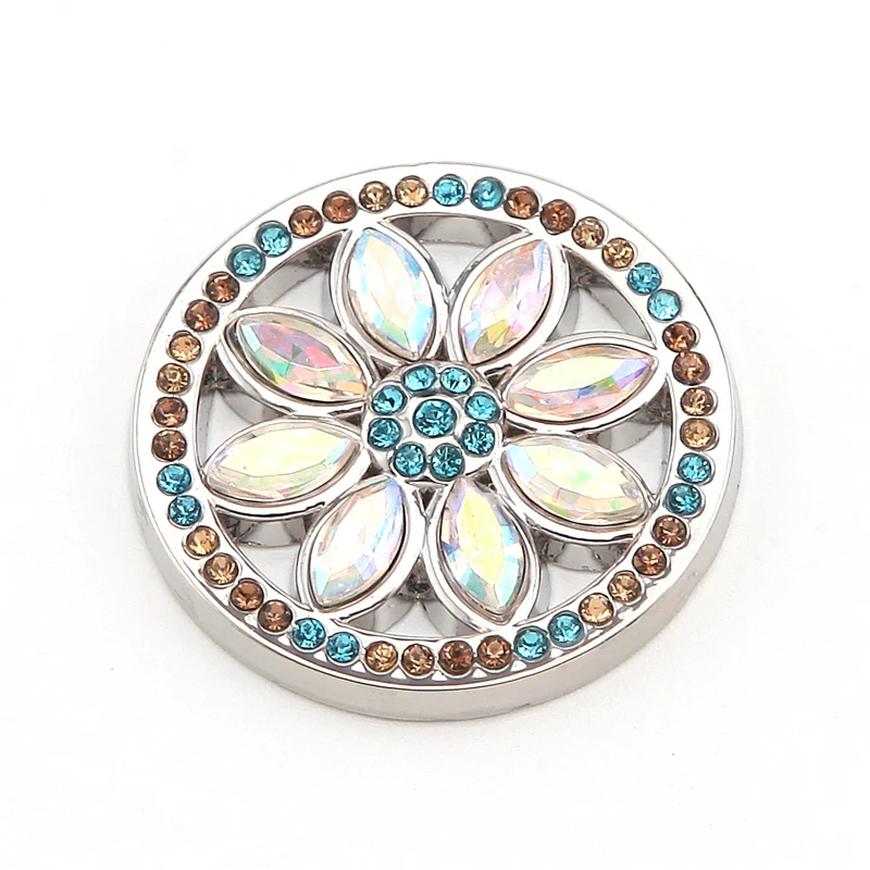 Vinnie Design Jewelry 33mm Flower Coin with Sparkling Crystal for Coin Holder Frame Pendant 10pcs/lot