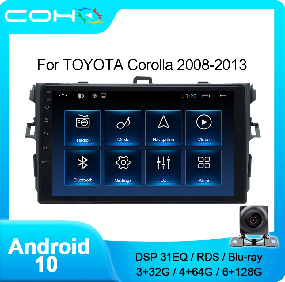 COHO для Toyota Corolla E140150 2007-2012 автомобильный мультимедийный плеер стерео радио Android 10 6 + 128G Octa Core