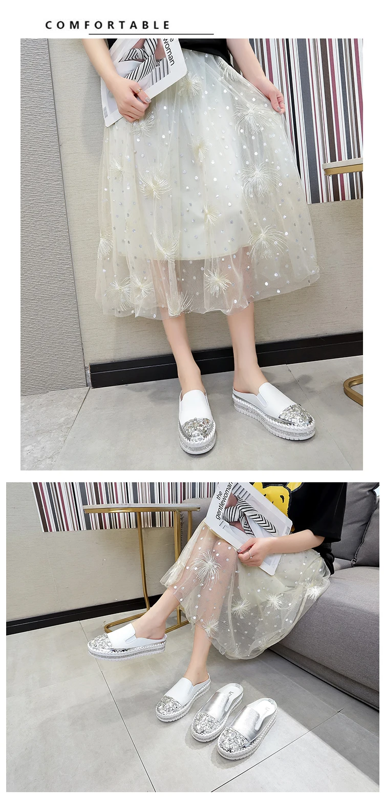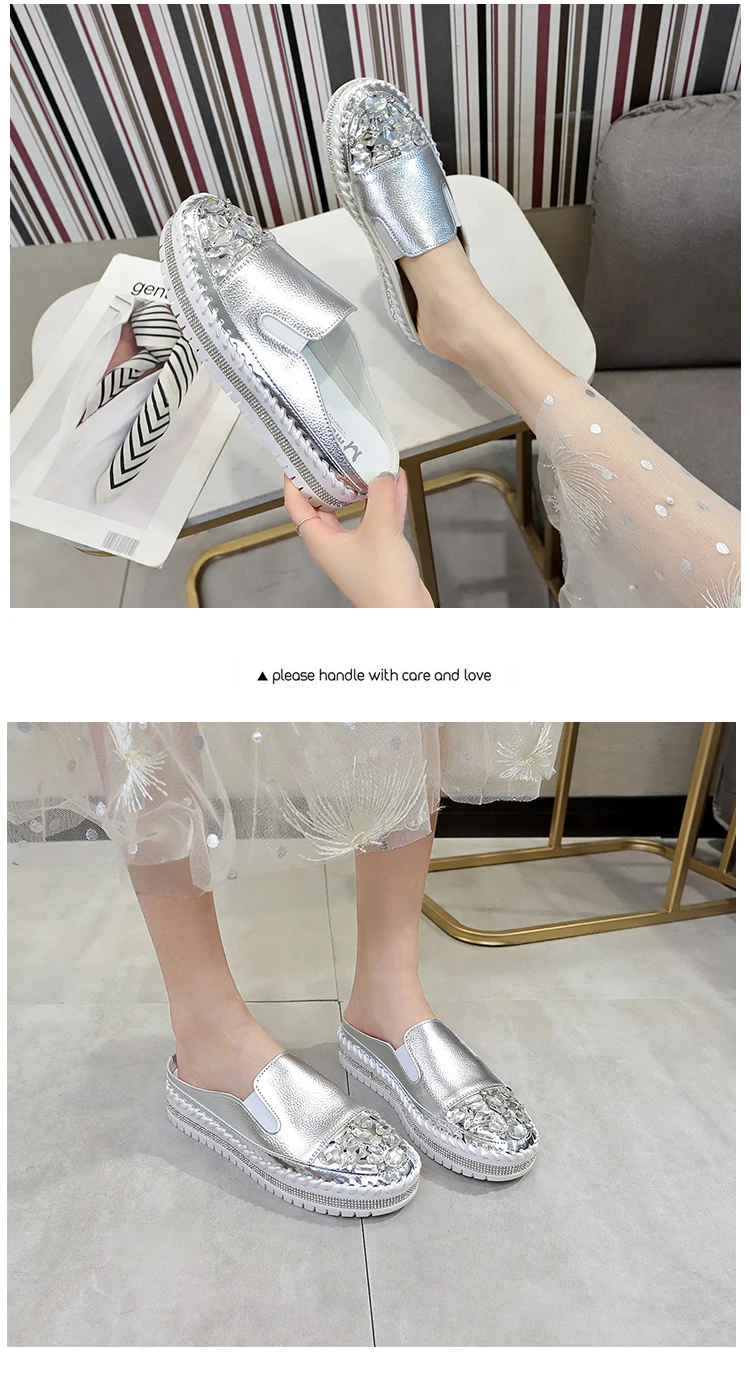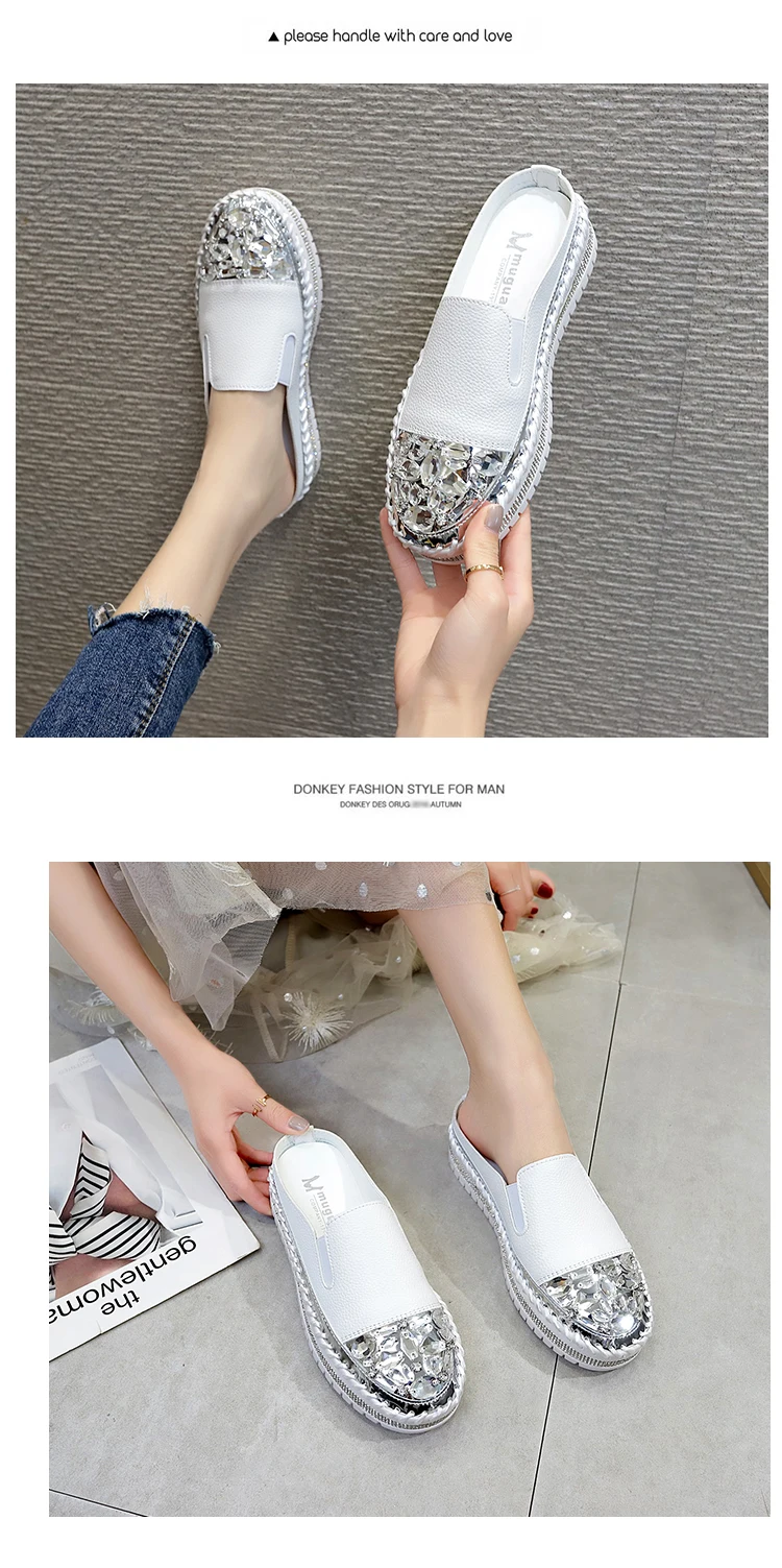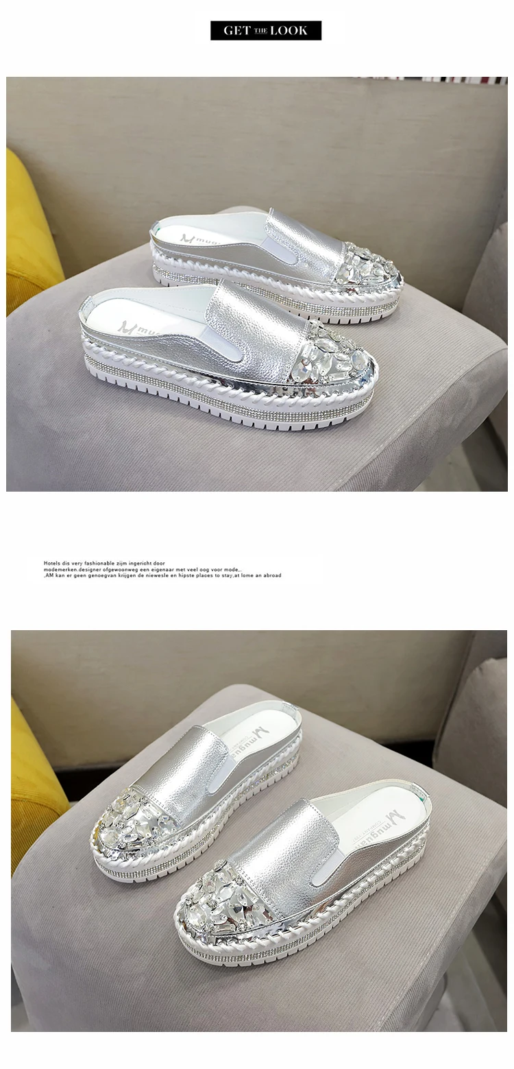 Женские полушлепанцы со стразами Aphixta, шикарные резиновые женская обувь со стразами, Прошитые вручную, на платформе, 2021