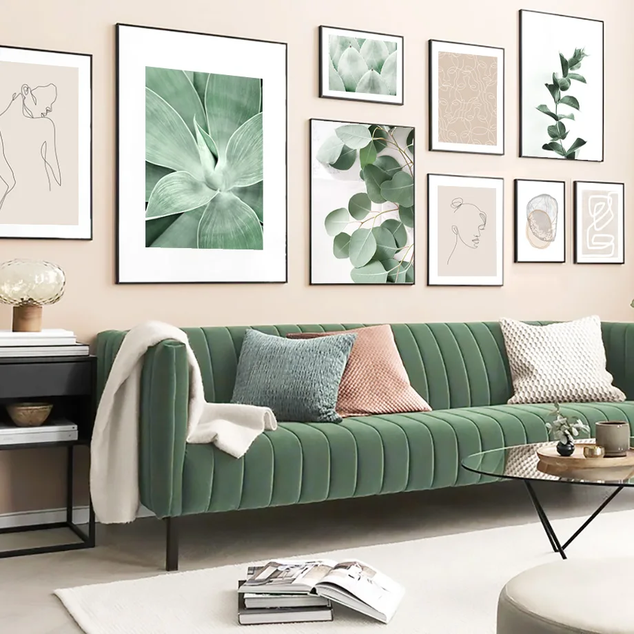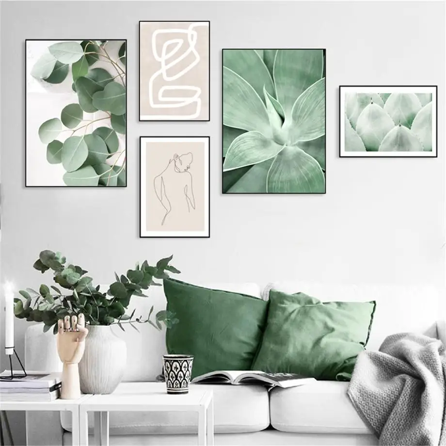 Зеленое растение абстрактные линии ВИНТАЖНЫЙ ПЛАКАТ скандинавские плакаты и принты настенная живопись холст настенные картины для декора гостиной
