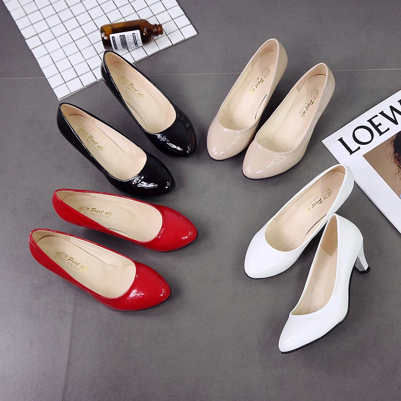Туфли женские кожаные на среднем каблуке, Классические офисные туфли-лодочки, привлекательные красные, черные, белые, на высоком каблуке