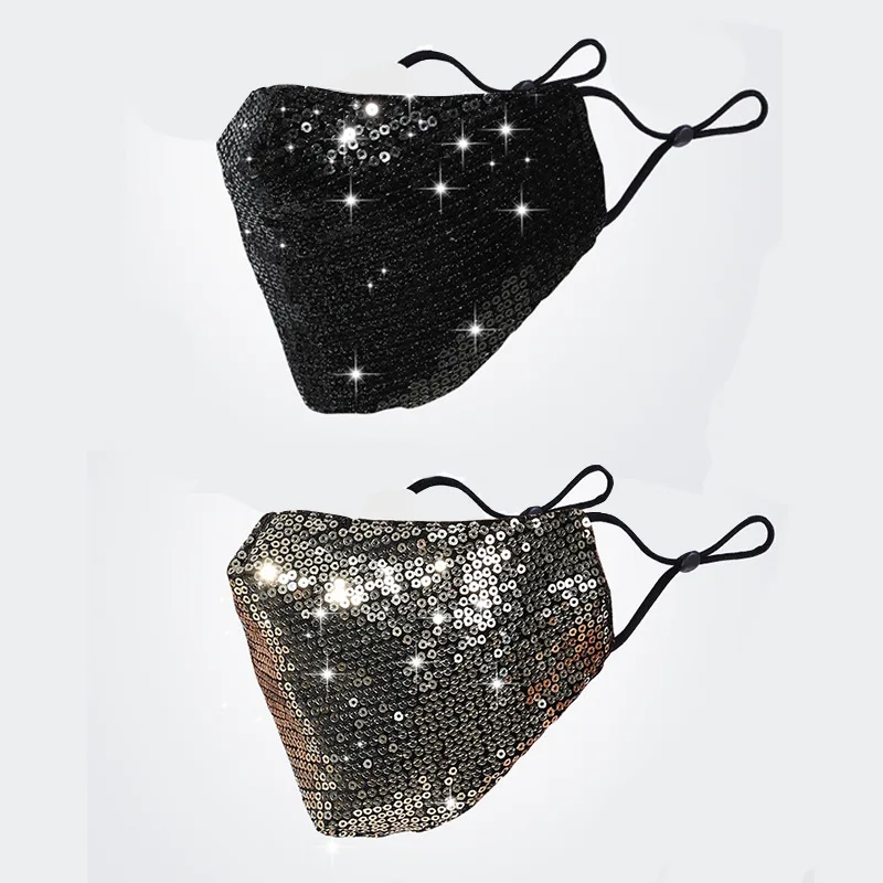 Модная блестящая золотая маска с блестками, хлопковые противопылевые маски, золотые, черные вечерние дышащие респираторы унисекс, моющиеся маски для лица