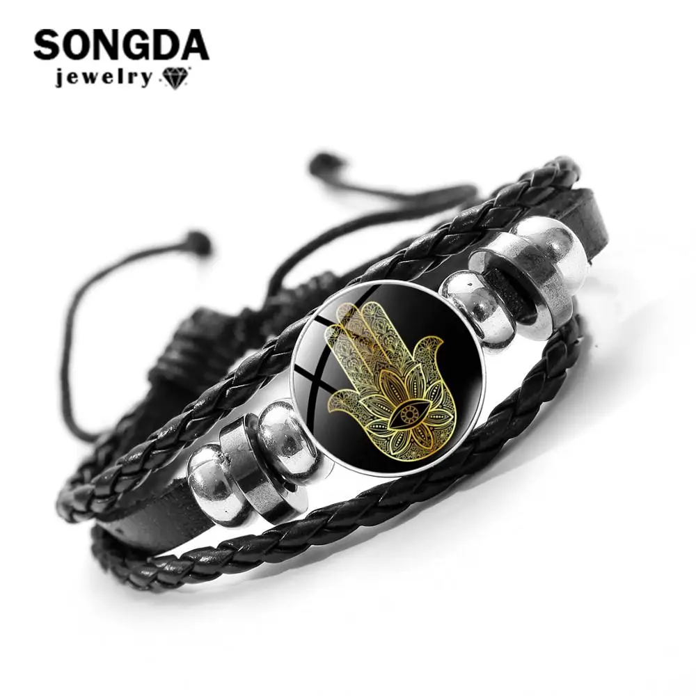Кожаные браслеты с кабошоном, многослойные браслеты с изображением ...