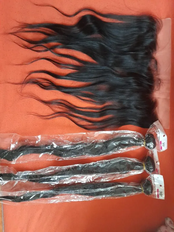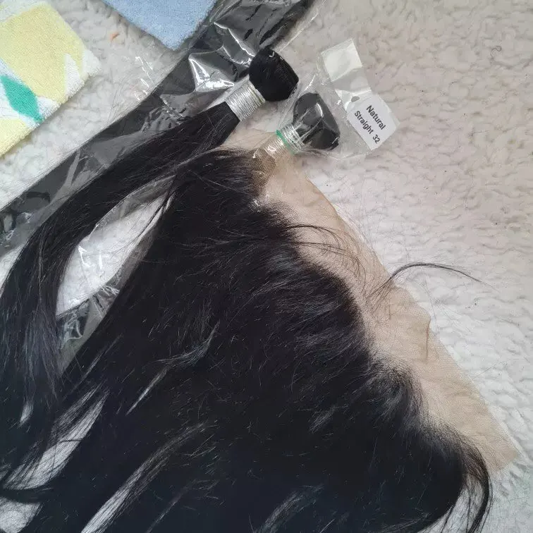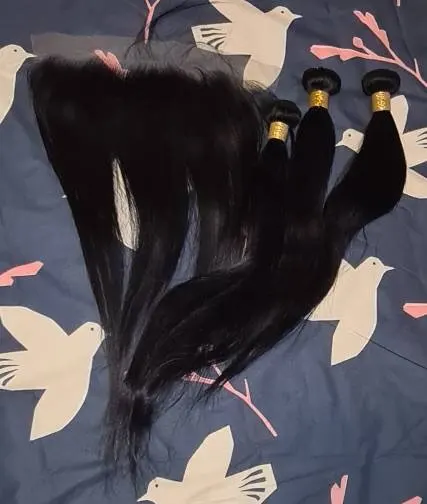 Волосы хорошего качества и очень красивые до сих пор, но кружево не очень прозрачное. Может зависеть от клея, который вы используете, но не уверены. Определенно рекомендую купить. Я заказал 24 дюймовые пучки с фронтальным фронтом 20 дюймов, и он приходит очень быстро.