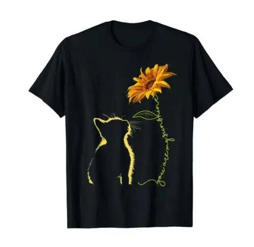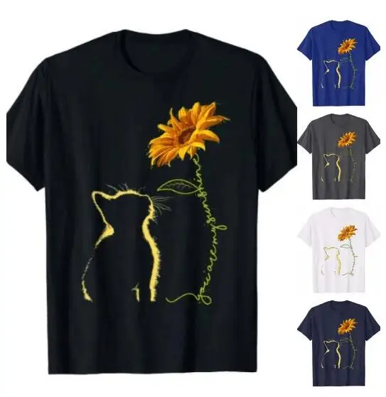 Женская хлопковая одежда S-3XL, летняя футболка с коротким рукавом с принтом кота, подсолнуха, повседневный Свободный Топ, туники, женская одежда