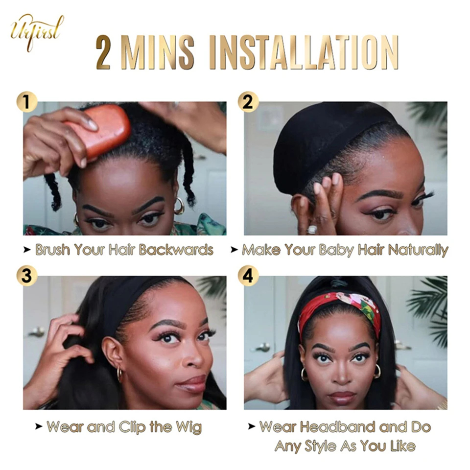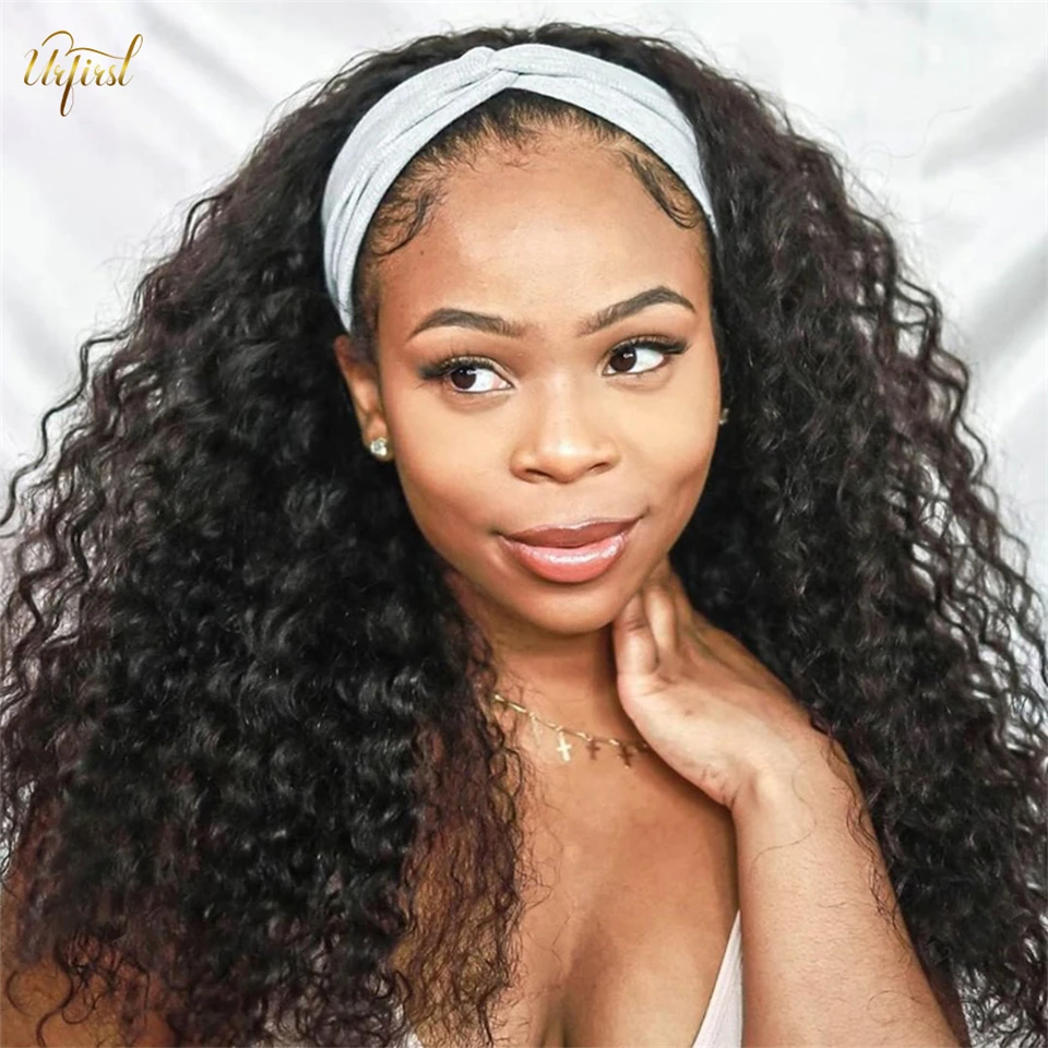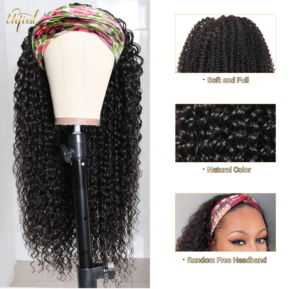 URFIRST Jerry, вьющийся семейный бразильский полноразмерный парик с головной повязкой, парик из человеческих волос для черных женщин, парик из безклеевых человеческих волос