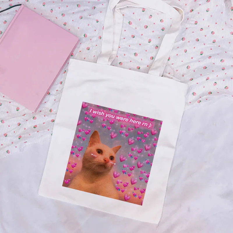 Kawaii Ulzzang Harajuku Эстетическая Холщовая Сумка-тоут через плеч...