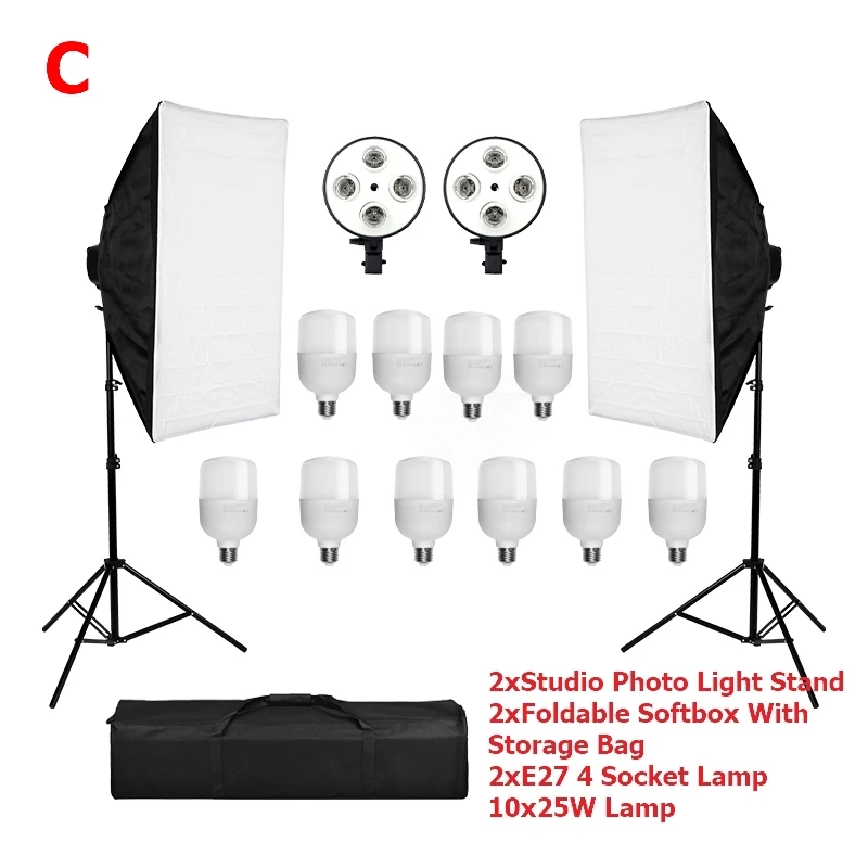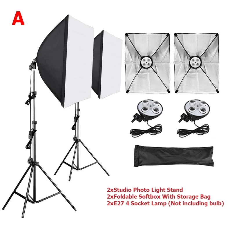 Набор софтбоксов для освещения для фотосъемки, 50x70 см, E27, 4 в 1...