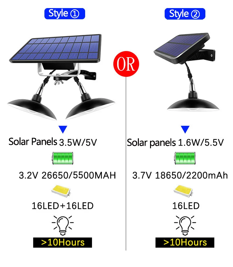 Мощность солнечной панели: стиль ① двойная головка 5,5 В 3,5 Вт, стиль ② одиночная головка 5,5 В 1,6 Вт