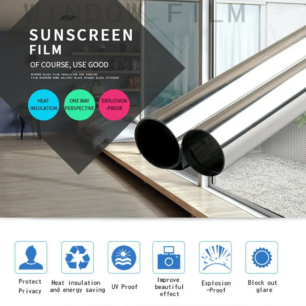 Односторонняя стеклянная самоклеящаяся зеркальная оконная пленка, самодельная Светоотражающая Изолированная фольга, для домашнего офиса, декоративные наклейки, черный, серебристый