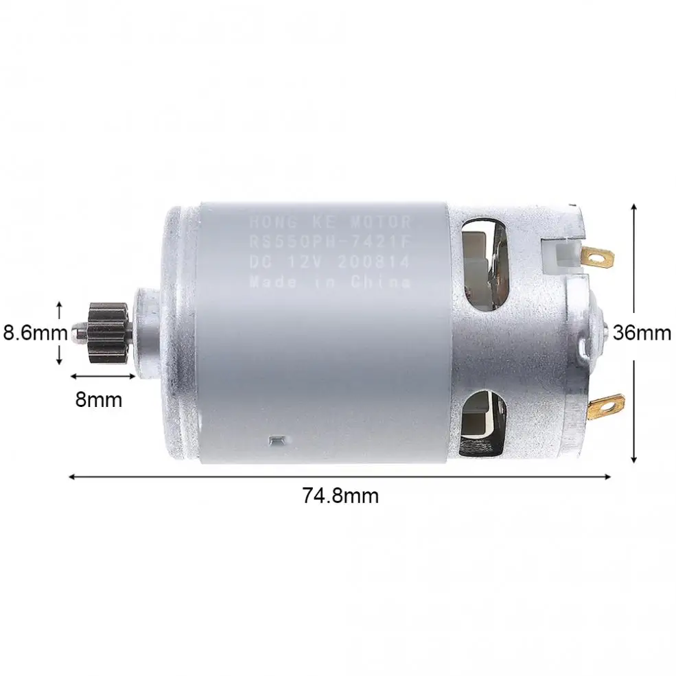 Двигатель постоянного тока RS550, 12 В, 19500 обмин, с двумя скоростями, 12 зубцами, коробка передач с высоким крутящим моментом, подходит для электродрелишуруповерта
