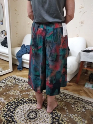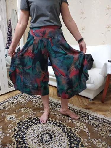 Товар пришел очень быстро, юбка - брюки мне очень понравились, ткань похожа на штапель , лёгкая ,не просвечивается , натуральная, очень мягкая и приятная к телу,в общем я очень довольна. Я не худенькая, но это шикарные брюки ,которые замечательно сидят .Всем советую, очень нравятся , рекомендую к покупке. Продавец положил подарочек . Постираю дополню отзыв.