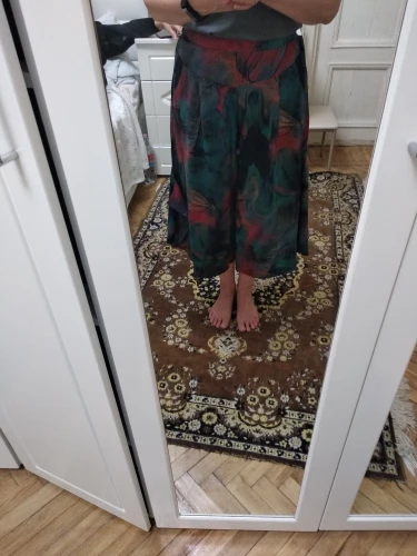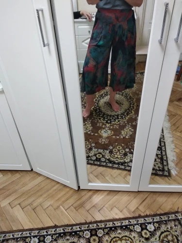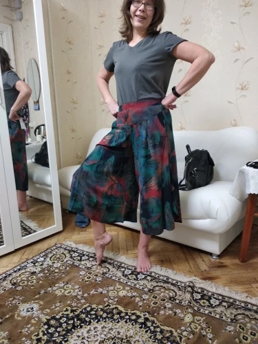 всё как в описании. качество хорошее. на невысокий рос смотрятся как штаны-юбка в пол. доставка меньше месяца