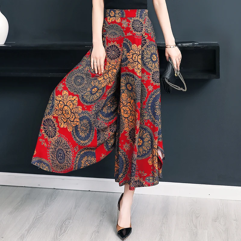 Женские брюки с широкими штанинами, винтажные свободные брюки с высокой талией в богемном стиле, лето 2022