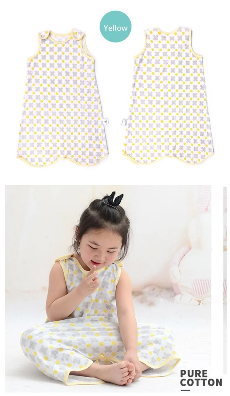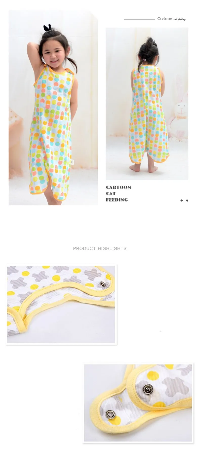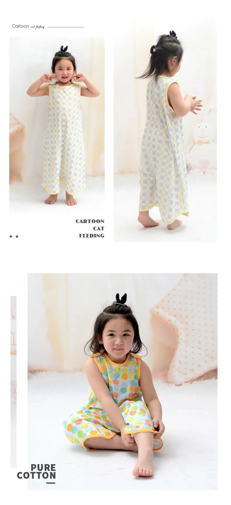 Мультяшный детский спальный мешок, летняя тонкая детская пижама без рукавов с карманом для живота, ударопрочная одежда для сна, спальная одежда для малышей