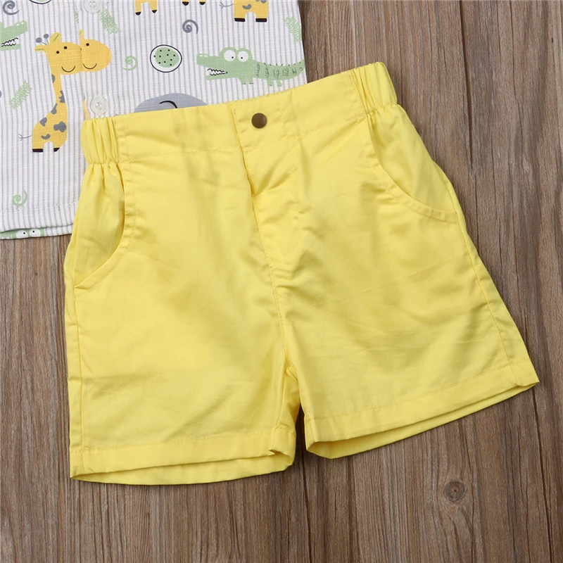 2020 модная летняя одежда для маленьких мальчиков, с изображением милых животных, футболка Топ + шорты штаны Одежда Комплект От 1 до 6 лет