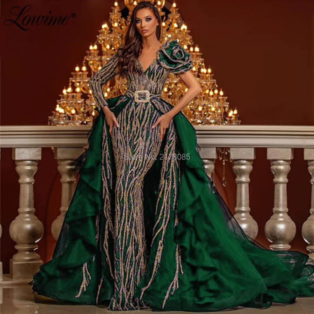 Зеленые блестящие вечерние платья со съемной юбкой, темно-синие платья с длинным рукавом для выпускного вечера в Дубае, кафтан, абайя, Саудовская Аравия