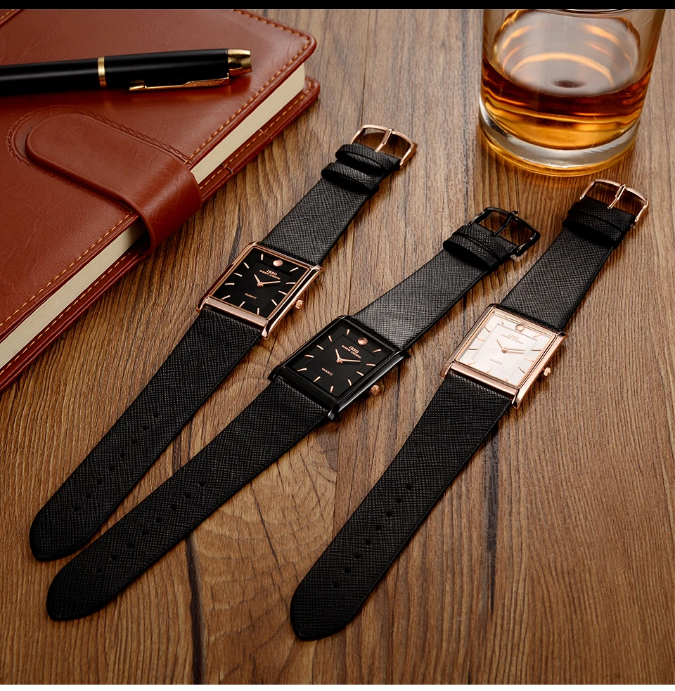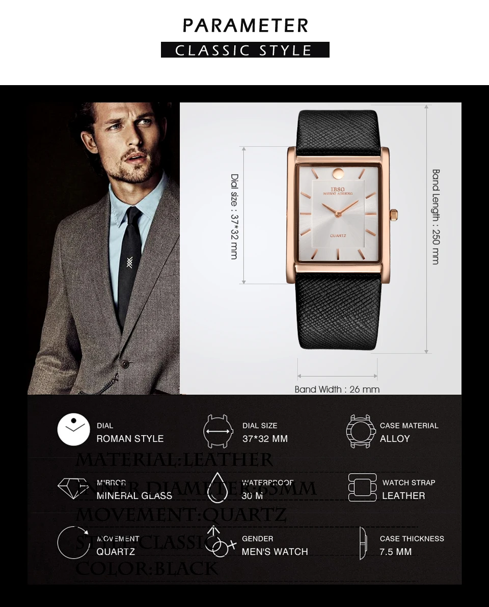 Прямоугольные мужские часы IBSO 7 мм, кожаные Наручные часы, кварцевые роскошные деловые часы, Прямая поставка
