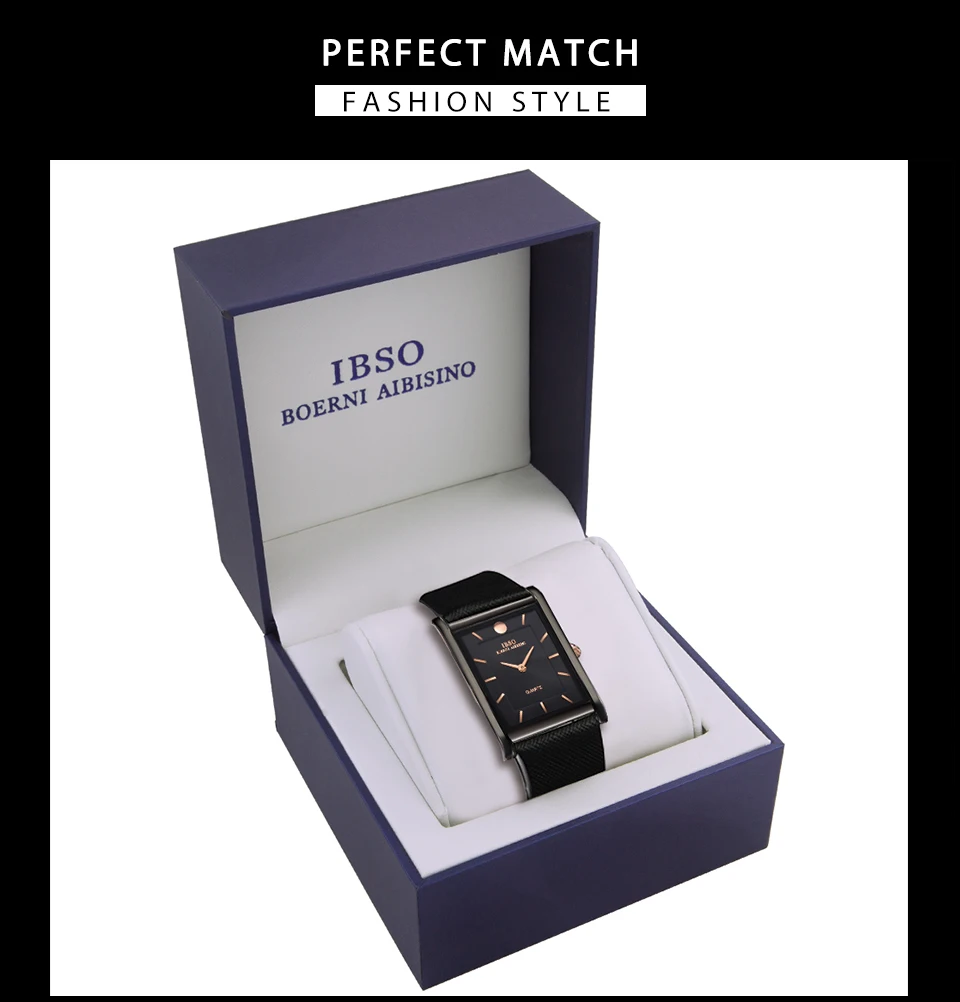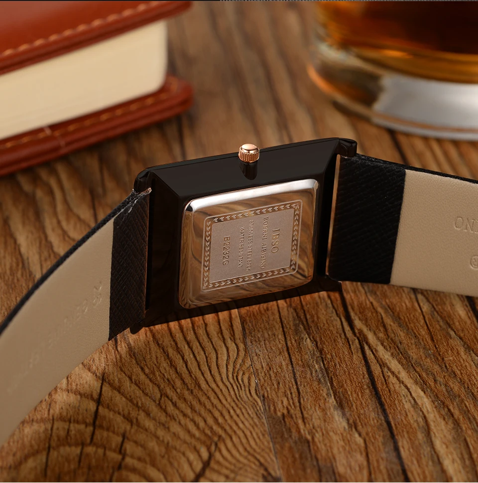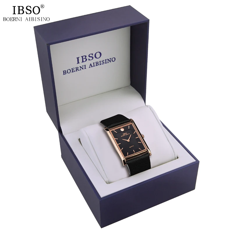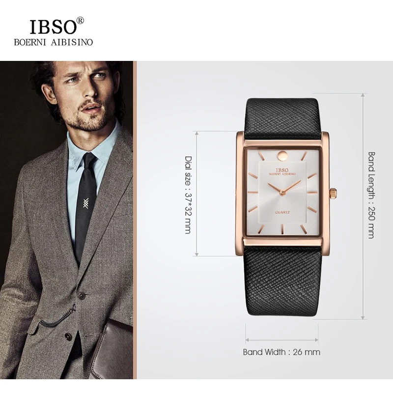 Прямоугольные мужские часы IBSO 7 мм, кожаные Наручные часы, кварцевые роскошные деловые часы, Прямая поставка с коробкой