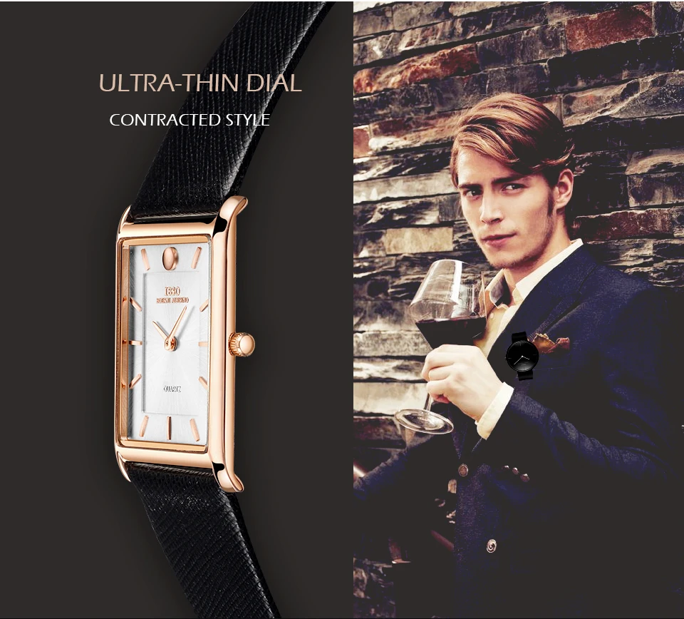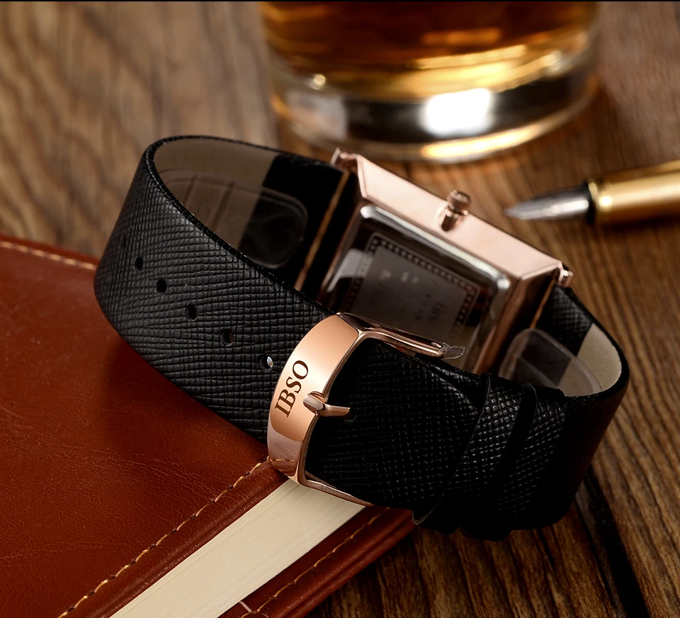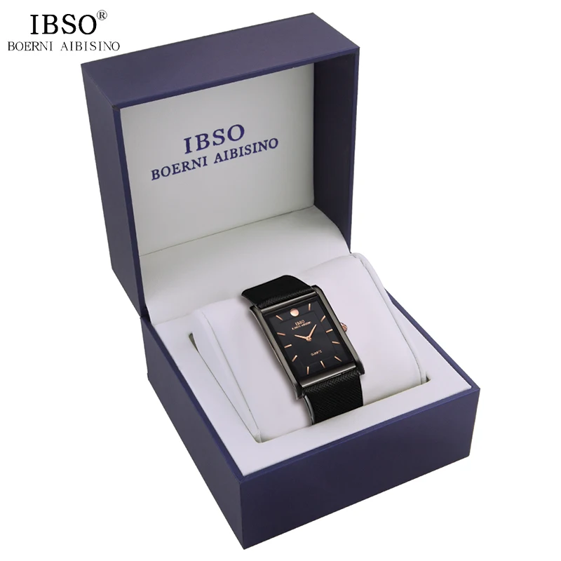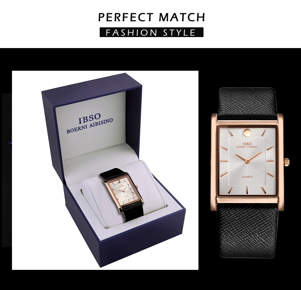 Прямоугольные мужские часы IBSO 7 мм, кожаные Наручные часы, кварцевые роскошные деловые часы, Прямая поставка с коробкой