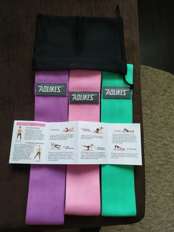 Лучшие резинки, самая дешевая цена на Aliexpress, очень качественные! Покупайте смело. Мой вес 46 кг и я чудесно справляюсь с каждой резинкой :) Фиолетовая самая мощная! Покупала дополнительно серую резинку — отличается по качеству, поэтому советую только в наборе три цветных. В комплекте мешочек и даже несколько упражнений с рисунками. Супер, я довольна. Спасибо большое продавцу!
