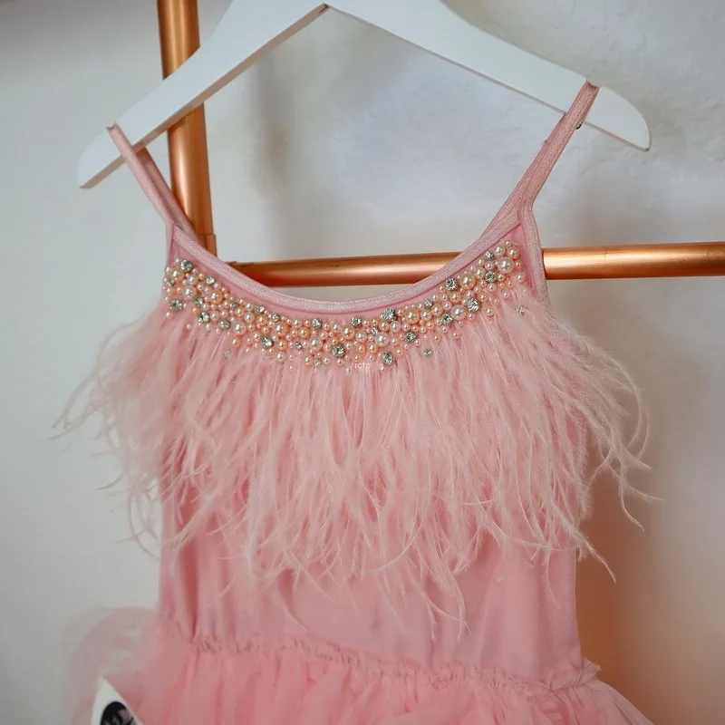 Платье принцессы на бретельках с бисером и перьями для девочек-подр...