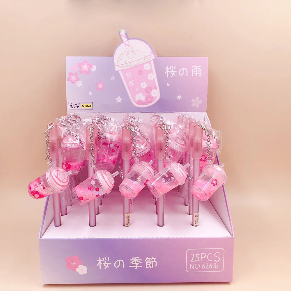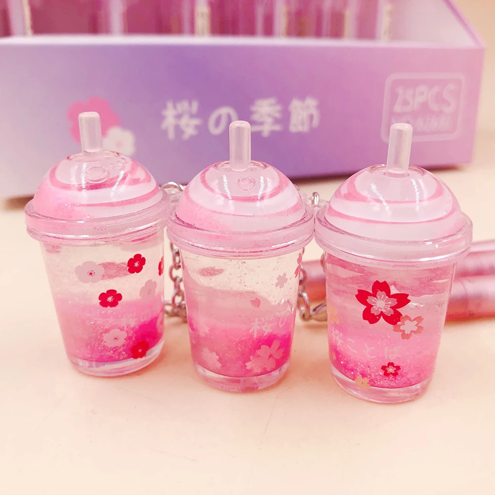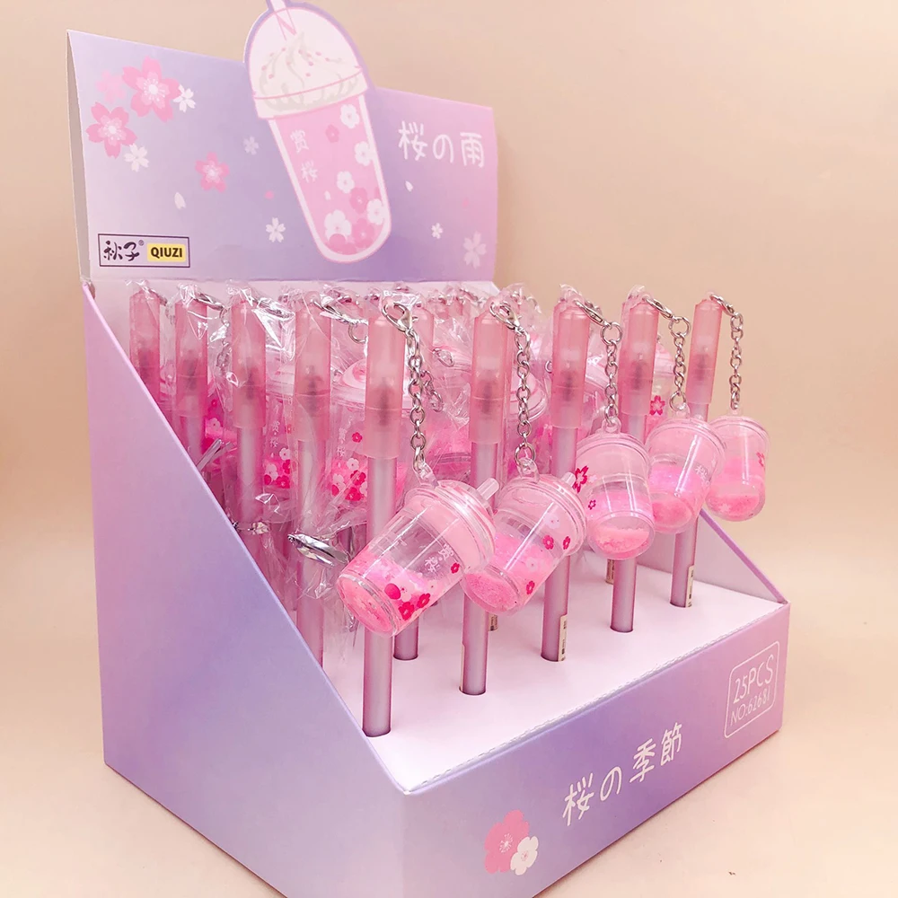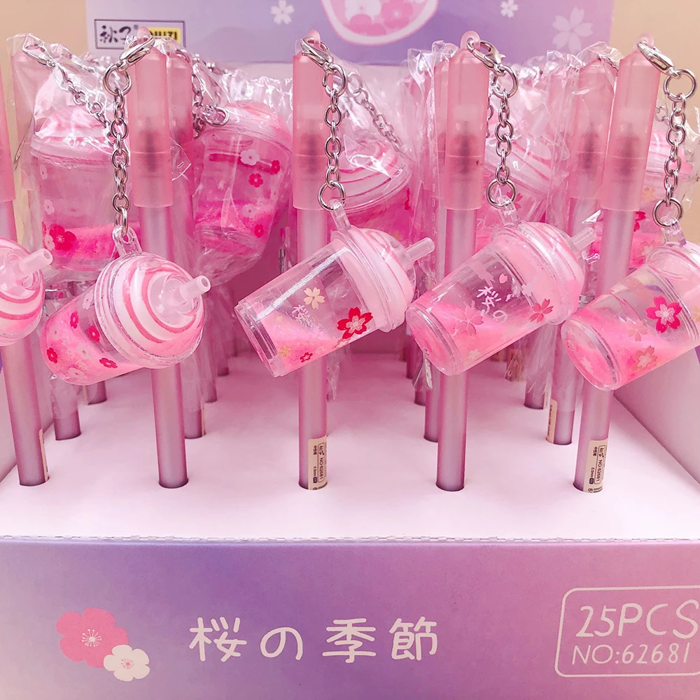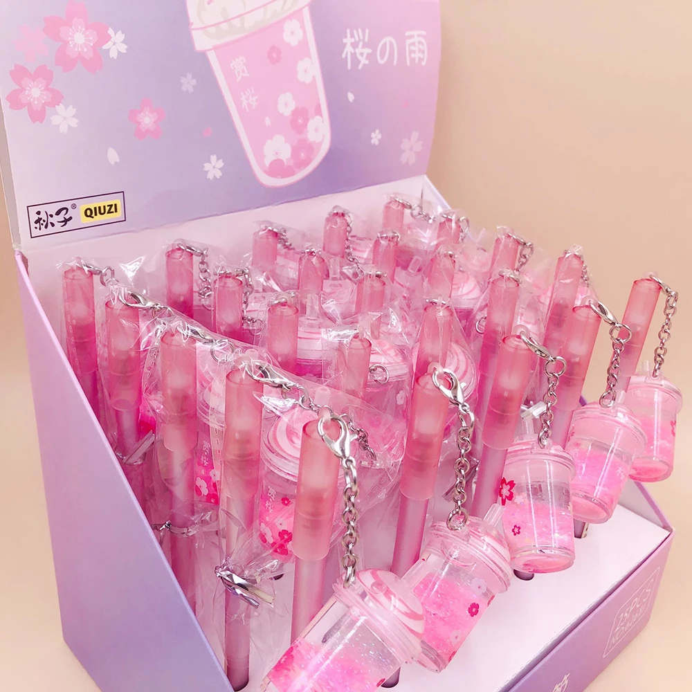 1 шт., цветущая вишня, молоко Чай чашка розовый гелевая ручка с подвеской 0,5 мм черные чернила ручки студент, школа, офис, поставка канцтоваров
