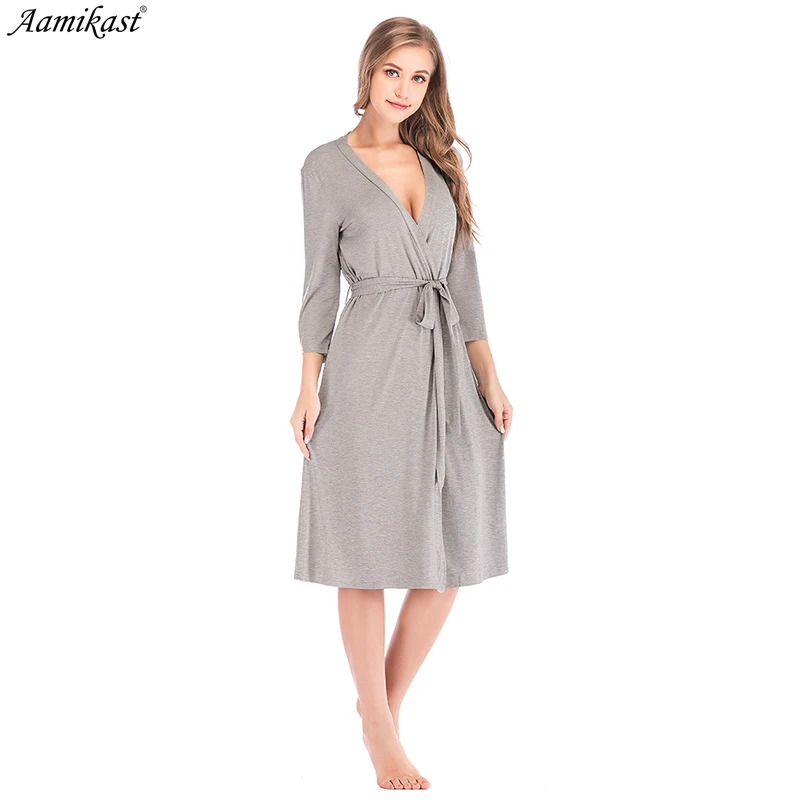 Одежда для сна женская из модала, халат с V-образным вырезом, дышащ...