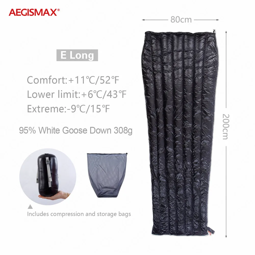 Уличный портативный спальный мешок AEGISMAX E, 43 52 FP800 95% гусиный пух, ультралегкий водонепроницаемый дорожный спальный мешок-конверт
